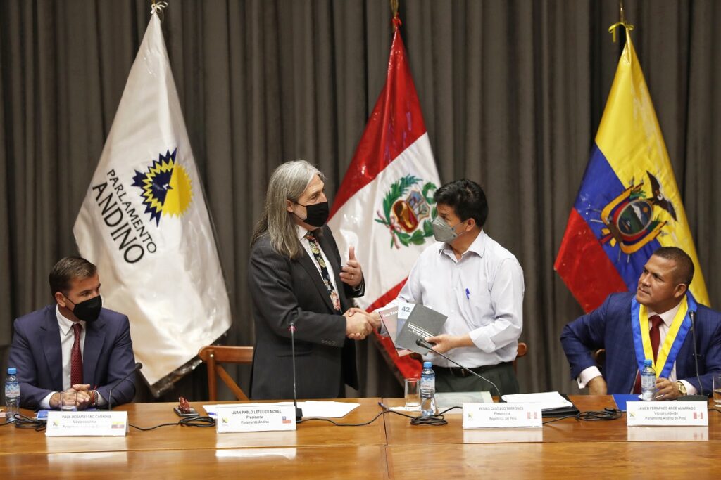 El jefe del Estado lideró una reunión con representantes del Parlamento Andino, en ese sentido el mandatario de la nación Inca, Pedro Castillo Terrones, coincidió con los parlamentarios andinos enlas expectativas que las naciones de este ente regional tienen en los próximos años, y se mostró a favor de abrir las fronteras para enfrentar los problemas comunes que se tienen en esta parte del continente.